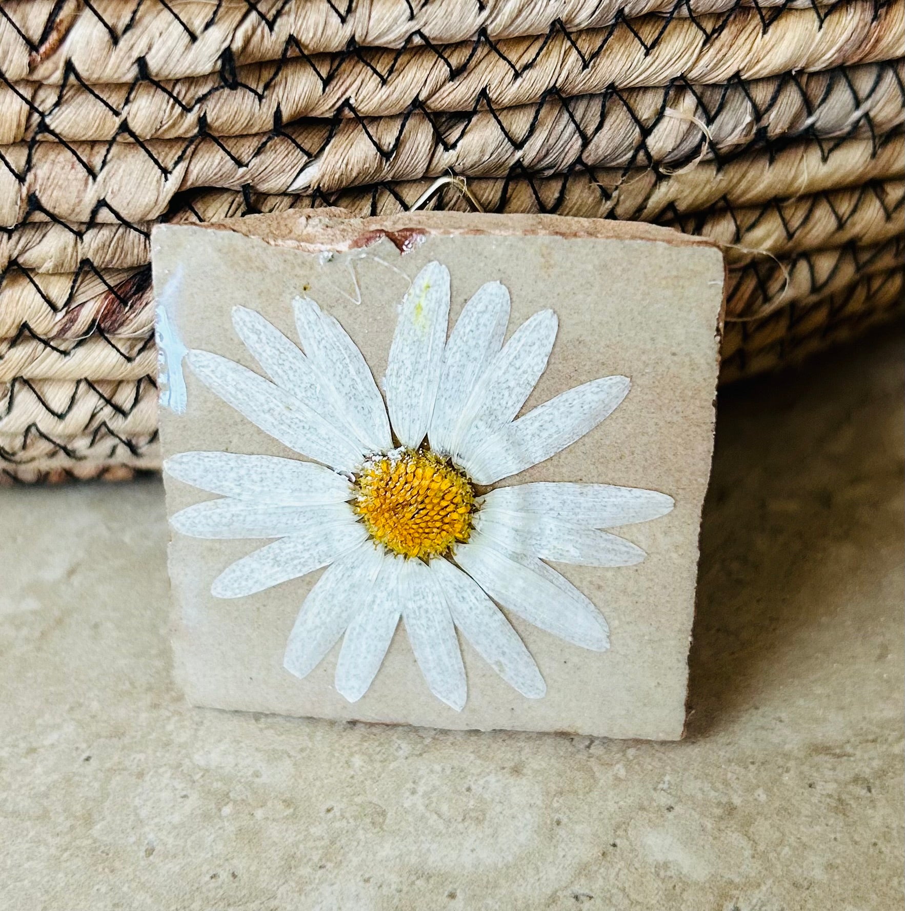 Handgemaakte tegel met echte droogbloemen. Elke tegel is uniek! Super leuk om neer te zetten of op te hangen in huis. Perfect om cadeau te doen.